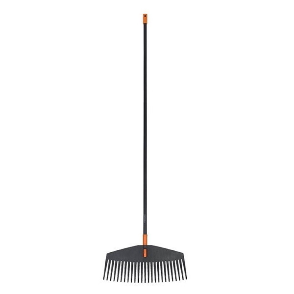 Τσουγκράνα φύλλων Solid L FISKARS, με ελαφρύ κοντάρι αλουμινίου για ξεκούραστη χρήση. Διαθέτει ανθεκτικές και συγχρόνως εύκαμπτες περόνες που διευκολύνουν στο μάζεμα των φύλλων χωρίς να σφηνώνουν στην τσουγκράνα.