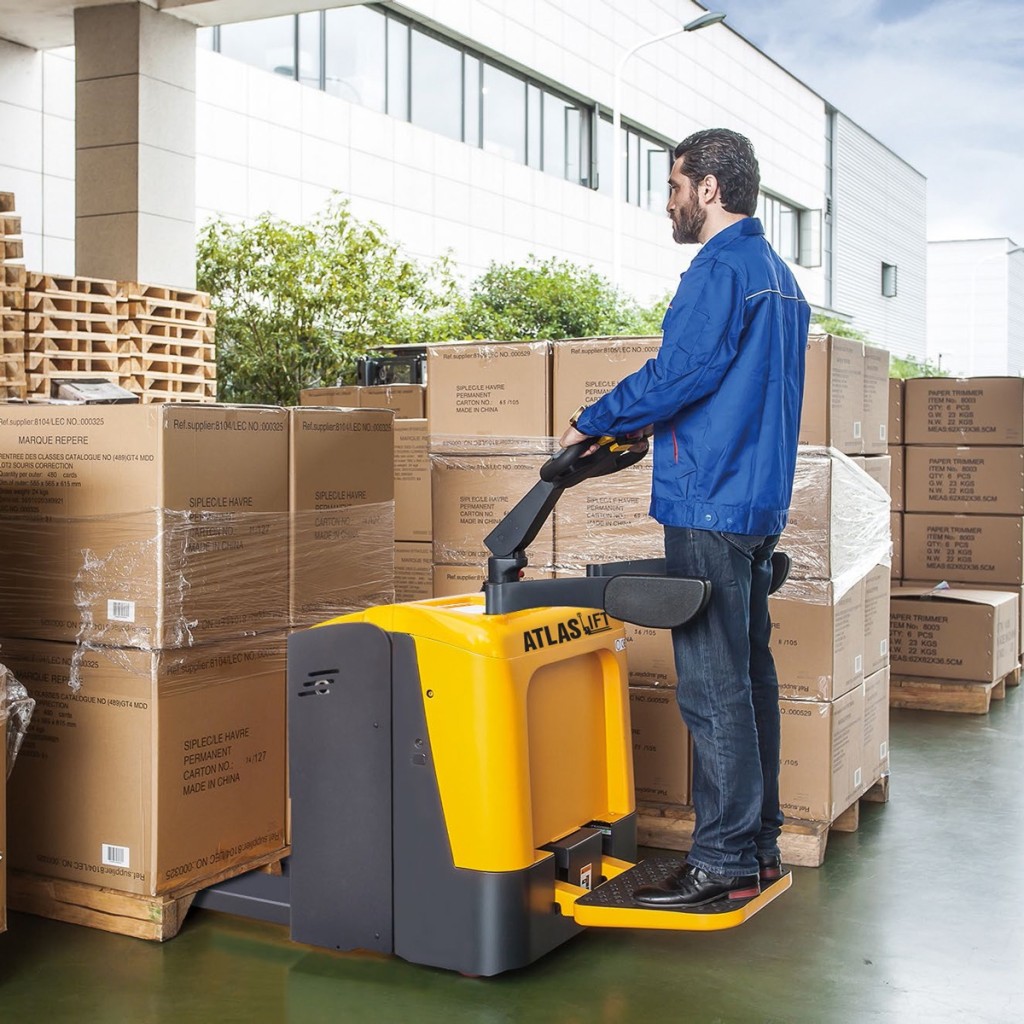 Το ηλεκτρικό παλετοφόρο CBD20R-II της Atlas Lift είναι εφοδιασμένο με αναδιπλούμενη πλατφόρμα για τον χειριστή και είναι κατάλληλο για εντατική χρήση και κάλυψη μεγάλων αποστάσεων.