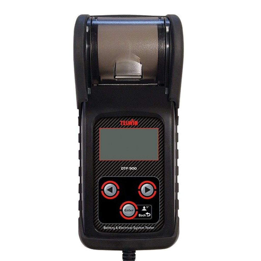 Ψηφιακός ελεγκτής TELWIN DTP900 BATTERY TESTER για έλεγχο της κατάστασης της μπαταρίας, της απόδοσης εκκίνησης (CCA), του συστήματος εκκίνησης και του κυκλώματος δυναμό του οχήματος. Επιλέξιμα διεθνή πρότυπα αναφοράς για οχήματα στα οποία αντιστοιχούν οι διάφορες σειρές ρεύματος ενισχυτή εκκίνησης που χρησιμοποιεί ο κατασκευαστής της μπαταρίας, αποτελεί περαιτέρω επιβεβαίωση της εξαιρετικής ευελιξίας αυτού του οργάνου (TELWIN DTP900 BATTERY TESTER). Πρακτικό και συμπαγές, επιτρέπει τη λειτουργία με μπαταρίες 12V/24V (WET, GEL, MF, AGM, PbCa, EFB) αποσυνδεδεμένες ή και συνδεδεμένες με το όχημα, διευκολύνοντας τις δοκιμές που είναι γρήγορες και εύκολες στην εκτέλεση. Αντισταθμίζει αυτόματα τη θερμοκρασία για πιο ακριβή ανίχνευση. Η οθόνη LCD με οπίσθιο φωτισμό διευκολύνει την ανάγνωση δεδομένων, ακόμη και σε περιβάλλοντα με χαμηλό φωτισμό. Εξοπλισμένο με ενσωματωμένο εκτυπωτή για εκτύπωση αναφορών.