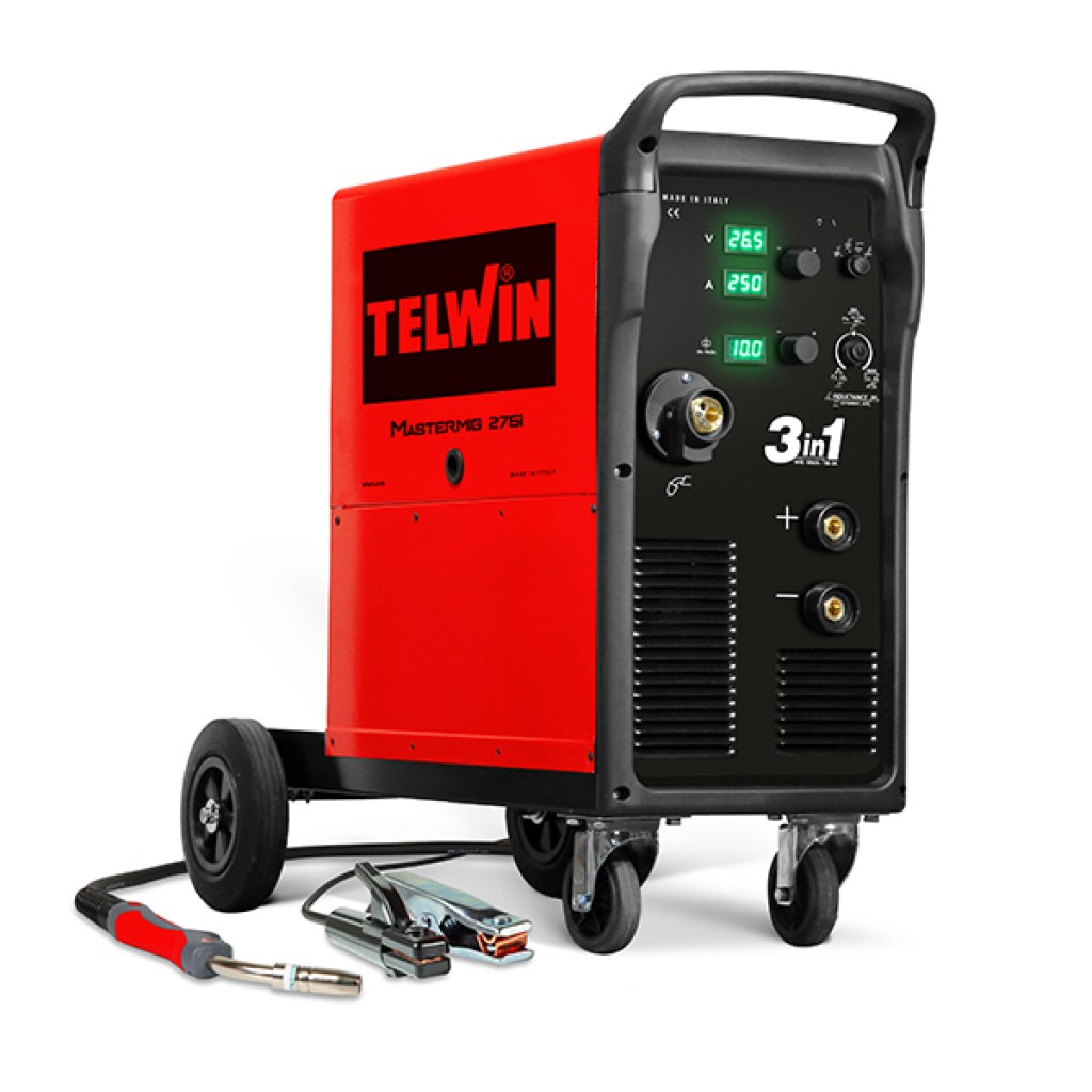 3 σε 1 MIG- MAG/FLUX/BRAZING/MMA και TIG DC-Lift τριφασικό αερόψυκτο inverter Telwin Mastermig 275i. Λόγω του ευρέως φάσματος εφαρμογών της και της μεγάλης ευελιξίας ικανότητας κόλλησης διαφόρων υλικών (σίδηρος, ανοξείδωτο, υψηλής αντοχής χάλυβα και αλουμίνιο κ.λπ.) της επιτρέπει να χρησιμοποιηθεί σε ένα μεγάλο εύρος εφαρμογών (μεταλλικές δομικές εργασίες, συντήρηση, εγκατάσταση κ.λπ.). Διατηρώντας υψηλή ισχύ και την ικανοποίηση του συγκολλητή, με σημαντική διαφορά στην κατανάλωση ρεύματος (έως -20%). Διαθέτουν οθόνες για πλήρη έλεγχο της μηχανής (V, A, mm) καθώς και μεγάλα κουμπιά για ρύθμιση ακόμα και με γάντι. Με την ποιότητα και αξιοπιστία που εγγυάται η τεχνολογία της Telwin, καθιστά την Telwin Mastermig 275i ιδανική για απαιτητικά περιβάλλοντα.