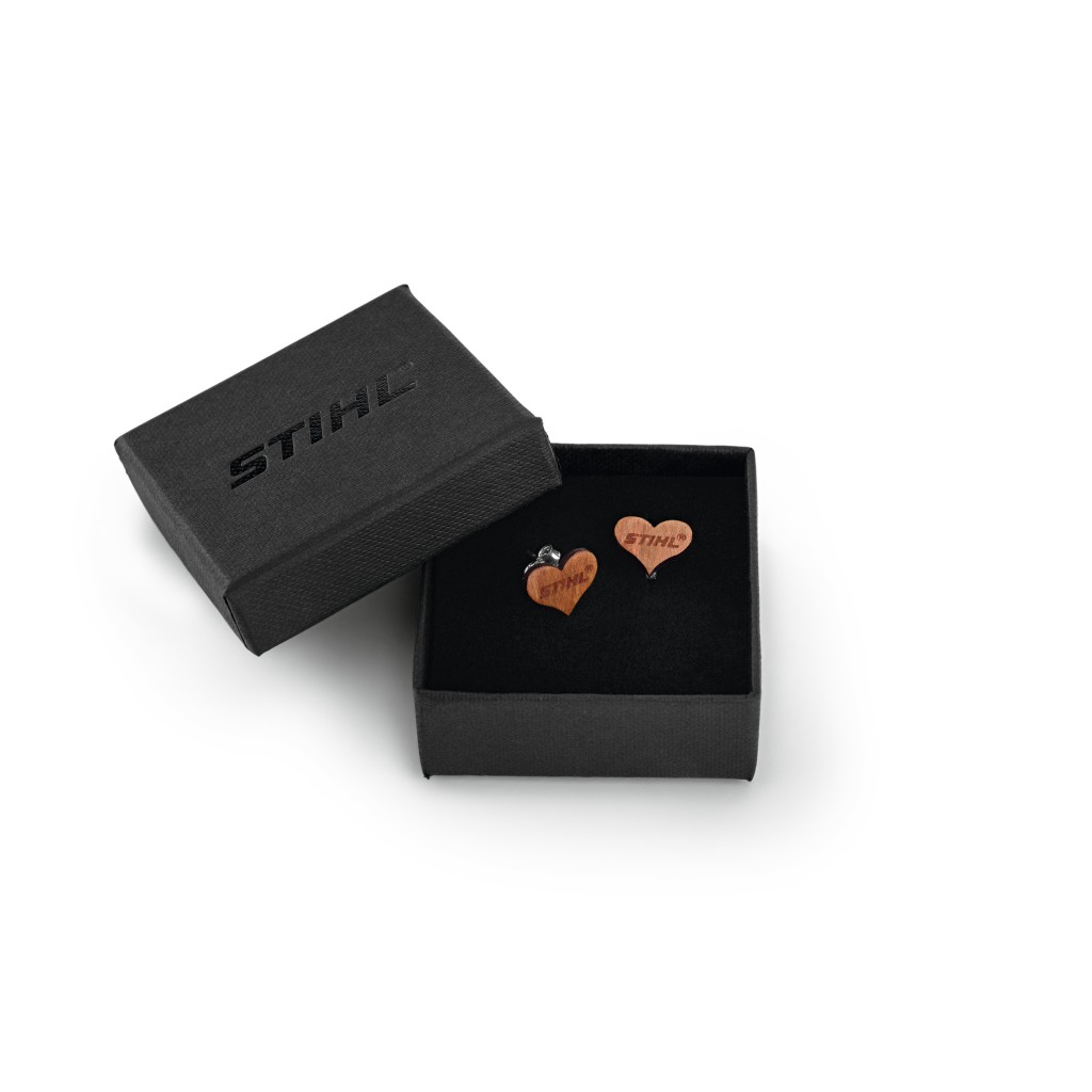 Ας μην είναι όλα χρυσός και διαμάντια: Αυτά τα νοσταλγικά σκουλαρίκια, κατασκευασμένα από ξύλο δαμασκηνιάς και με ασημένιο κούμπωμα, είναι ένα πραγματικά ξεχωριστό κόσμημα. Το καρδιόσχημο μοτίβο του σκουλαρικιού 1 x 1cm με τα όμορφα νερά έχει διακριτική επιγραφή STIHL, κάνοντας αυτά τα σκουλαρίκια ακόμη πιο εξαιρετικά. Και μέσα στο μαύρο κουτί κοσμημάτων είναι το τέλειο δώρο!