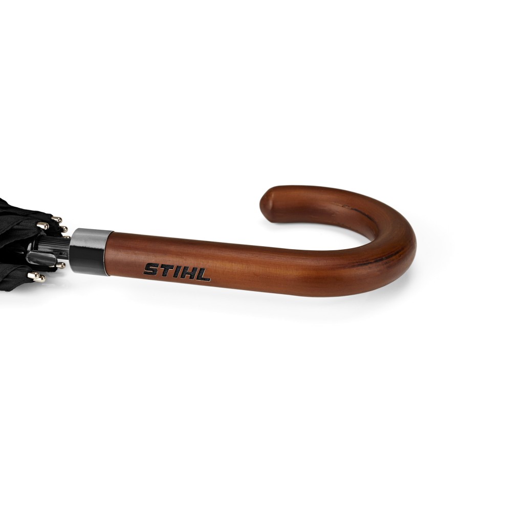 Στιβαρό μπαστούνι-ομπρέλα υψηλής ποιότητας με λαβή από ξύλο με πιστοποίηση FSC. Με ακτίνες και άξονα από ίνες υάλου. Μια εντελώς κανονική ομπρέλα; Κάθε άλλο! Γιατί εκτός από τα δύο τμήματα με το έμβλημα STIHL, η ομπρέλα μας έχει δύο επιπλέον τμήματα με υγρή εκτύπωση! Αυτό σημαίνει ότι δύο ακόμα λογότυποι STIHL εμφανίζονται μόνο όταν η ομπρέλα βρέχεται – ας ελπίσουμε να μην αργήσει να βρέξει! Διάμετρος ομπρέλας περίπου 113 cm.