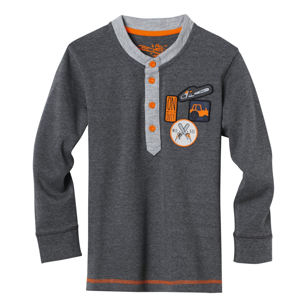 Αυτό το μακρυμάνικο πουκάμισο από μαλακό, άνετο βαμβακερό μείγμα θα αρέσει σε όλους, λόγω της casual πατιλέτας που ανεβαίνει σε χαμηλό όρθιο γιακά, ενώ τα αγόρια θα λατρέψουν τα μπαλώματα στο μπροστινό μέρος με ωραία μοτίβα όπως ένας εκσκαφέας, ένα αλυσοπρίονο και το λογότυπο Wild Kids. Γκρι μελανζέ, 60% βαμβάκι, 40% πολυεστέρας, όρθιο κολάρο με πατιλέτα σε αντίθετο χρώμα, διάφορα σχέδια σε στιλ καρτούν, μανίκια με μανσέτες.