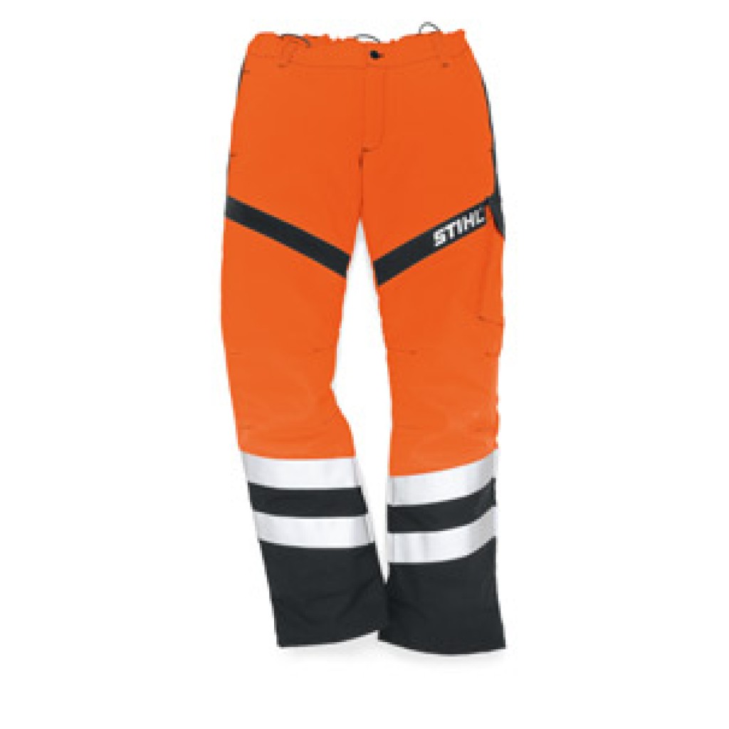 Με το προστατευτικό παντελόνι STIHL Protect FS υψηλής διακριτότητας για χειριστές κοπτικών μηχανημάτων, επαγγελματίες και φιλόδοξοι ιδιώτες χρήστες που εργάζονται με κοπτικά μηχανήματα STIHL είναι ορατοί και καλά προστατευμένοι, για παράδειγμα κοντά σε δρόμους και σιδηροδρομικές γραμμές. Αυτό το παντελόνι υψηλής διακριτότητας είναι κατασκευασμένο από σύμμικτο ύφασμα και διατίθεται σε regular εφαρμογή. Η διαπνέουσα προστασία από κρούσεις στο μπροστινό μέρος αυτού του στιβαρού παντελονιού για χειριστές κοπτικών μηχανημάτων απορροφά τη δύναμη από σωματίδια που πέφτουν πάνω της κατά τη χρήση του κοπτικού μηχανήματος, και με τον τρόπο αυτό προσφέρει αξιόπιστη προστασία. Τα μακριά ανοίγματα αερισμού στο πίσω μέρος του παντελονιού εξασφαλίζουν ένα ευχάριστο εσωτερικό κλίμα. Για ακόμα μεγαλύτερη προστασία σε ακραίες εφαρμογές, μπορείτε να τοποθετήσετε τα προαιρετικά κατοχυρωμένα προστατευτικά ποδιών STIHL FS μέσα στις εσωτερικές τσέπες. Το παντελόνι υψηλής διακριτότητας STIHL Protect FS για χειριστές κοπτικών μηχανημάτων κατατάσσονται στην κατηγορία 2 για ενδύματα υψηλής διακριτότητας. Επιπλέον των αντανακλαστικών λωρίδων, το μεγάλο ποσοστό σε πορτοκαλί υψηλής διακριτότητας εξασφαλίζει καλή ορατότητα σε δρόμους και σιδηροδρομικές γραμμές, ακόμα και με κακές καιρικές συνθήκες. Αν συνδυάσετε αυτό το παντελόνι υψηλής διακριτότητας με το σακάκι υψηλής διακριτότητας STIHL Vent, μπορείτε να πετύχετε την κατηγορία υψηλής διακριτότητας 3.