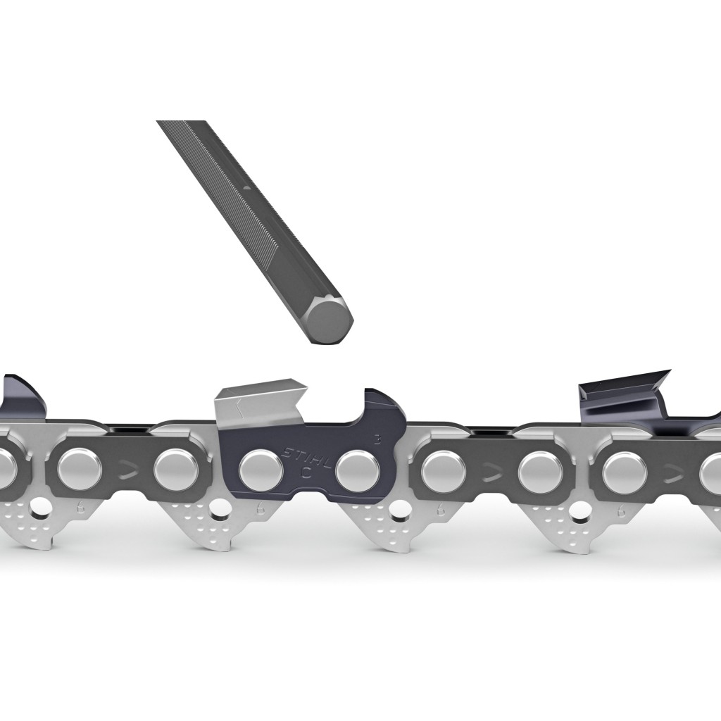 Το πρωτοποριακό σχήμα της λίμας STIHL Hexa ταιριάζει απόλυτα με τα δόντια της αλυσίδας 3/8'' Hexa.