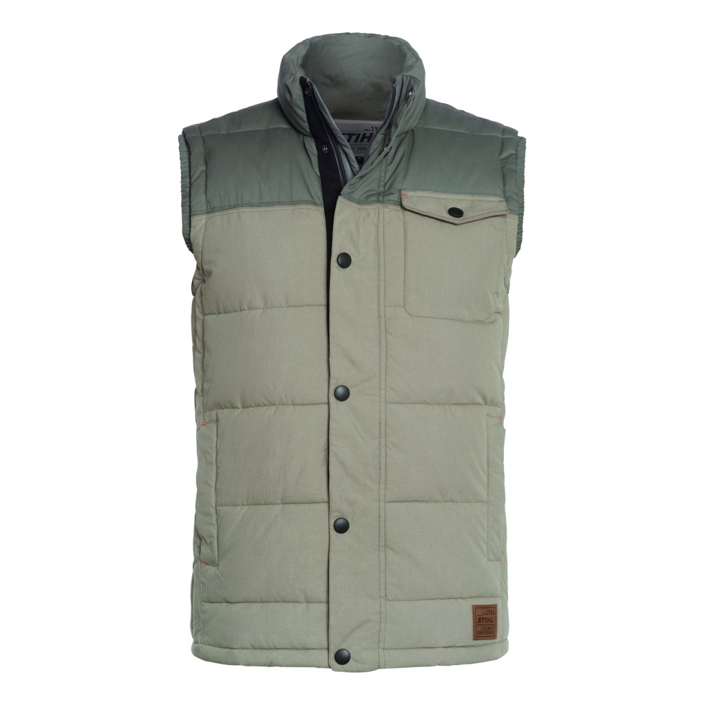 Διαχρονικό, ζεστό και λειτουργικό. Αυτό το καπιτονέ γιλέκο της STIHL είναι κατασκευασμένο από ιδιαίτερα ανθεκτικό ύφασμα και αποτελεί απαραίτητο ρούχο για κάθε εκδρομική δραστηριότητα. Συνολικά πέντε τσέπες εσωτερικά και εξωτερικά σημαίνουν ότι υπάρχει αρκετός χώρος για όλα όσα χρειάζεστε όταν βρίσκεστε εν κινήσει. Μια premium δερμάτινη ετικέτα STIHL ολοκληρώνει τον κλασικό σχεδιασμό.