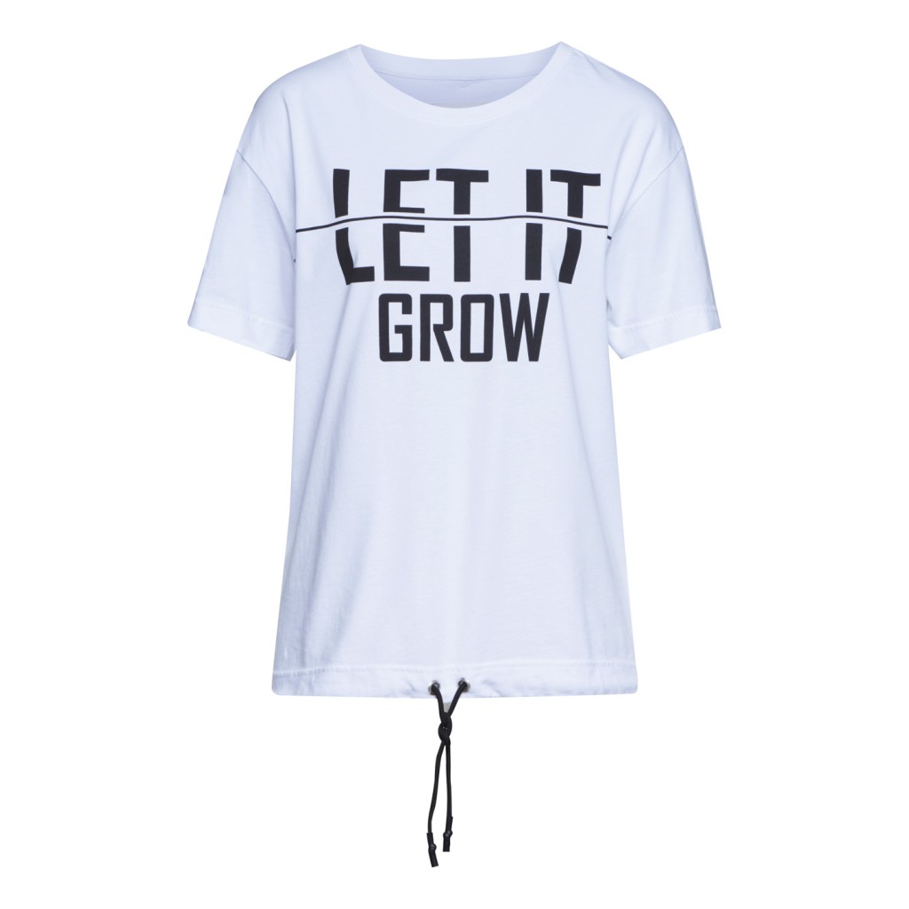 Χαλαρό, κομψό, πολύπλευρο: έτσι περιγράφεται το νέο μας T-shirt σε λευκό χρώμα, από 100% βαμβάκι. Το κορδόνι στο κάτω μέρος σάς προσκαλεί να αλλάξετε εμφάνιση, η χαλαρή στρογγυλή λαιμόκοψη δεν περιορίζει, και το τυπογραφικό σχέδιο «LET IT GROW» κάνει δήλωση. Από 90% βαμβάκι και 10% πολυεστέρα.