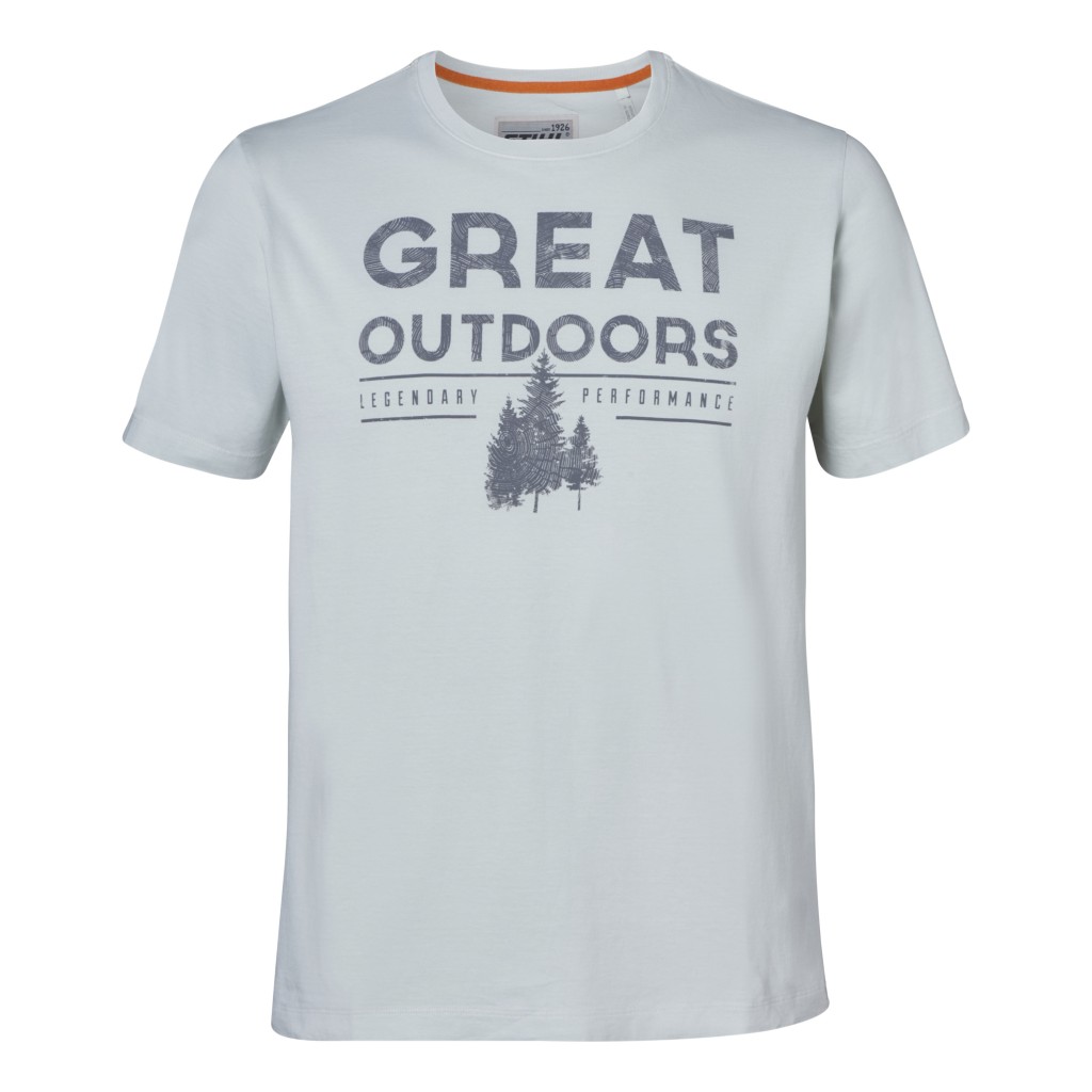 Τίποτα δεν συγκρίνεται με την ύπαιθρο! Χαλαρό και άνετο T-shirt σε ανοιχτό γκρι από καθαρό βαμβάκι με στάμπα «GREAT OUTDOORS» στο μπροστινό μέρος. Επίσης διαθέσιμο σε λαδί χρώμα.