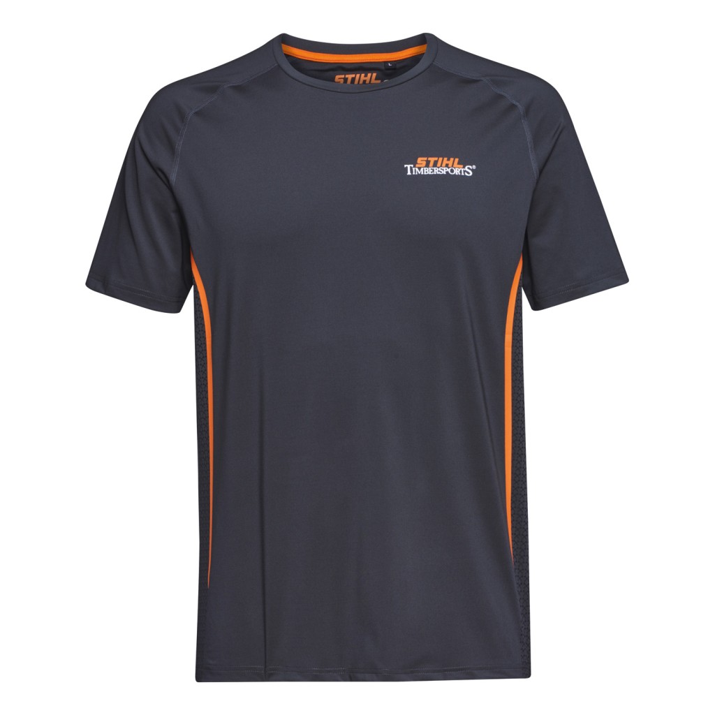 Αυτό το διαπνέον λειτουργικό μπλουζάκι σε γκρι χρώμα από 86% πολυεστέρα και 14% ελαστάνη με μικρές πινελιές σε πορτοκαλί χρώμα θα γίνει το νέο αγαπημένο σας κομμάτι στις αθλητικές σας δραστηριότητες. Έχει λογότυπο STIHL TIMBERSPORTS® στο στήθος, καθώς και ένθετα στη μέση με επαναλαμβανόμενο σχέδιο από διασταυρούμενα τσεκούρια που πλαισιώνεται από μια πορτοκαλί λωρίδα, για να διασπάσει την ενιαία εμφάνιση.