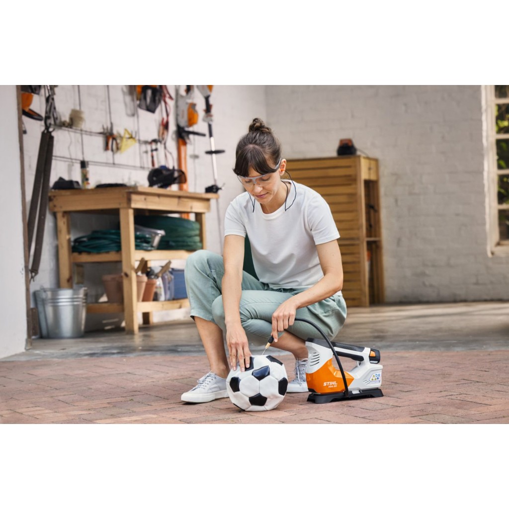 Ο επαναφορτιζόμενος συμπαγής αεροσυμπιεστής STIHL KOA 20 είναι ιδανικός για το εύκολο και γρήγορο φούσκωμα των ελαστικών αυτοκινήτων ή ποδηλάτων, καθώς και για το βολικό και γρήγορο ξεφούσκωμα εξοπλισμού αναψυχής και αθλητισμού, όπως μπάλες ή φουσκωτά. Δεν είναι χρήσιμος μόνο στο σπίτι, αλλά και εν κινήσει, για παράδειγμα όταν πρέπει να φουσκώσουν οι τροχοί ενός ρυμουλκούμενου.
